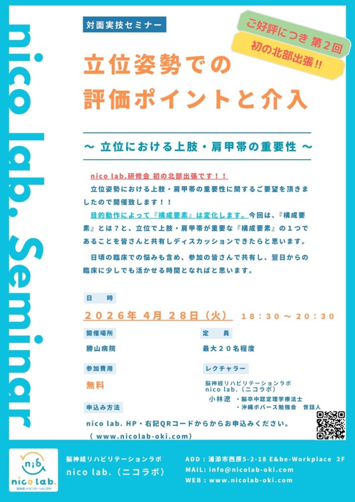 以前開催した、「立位と上肢・肩甲帯の関連性について」です!!